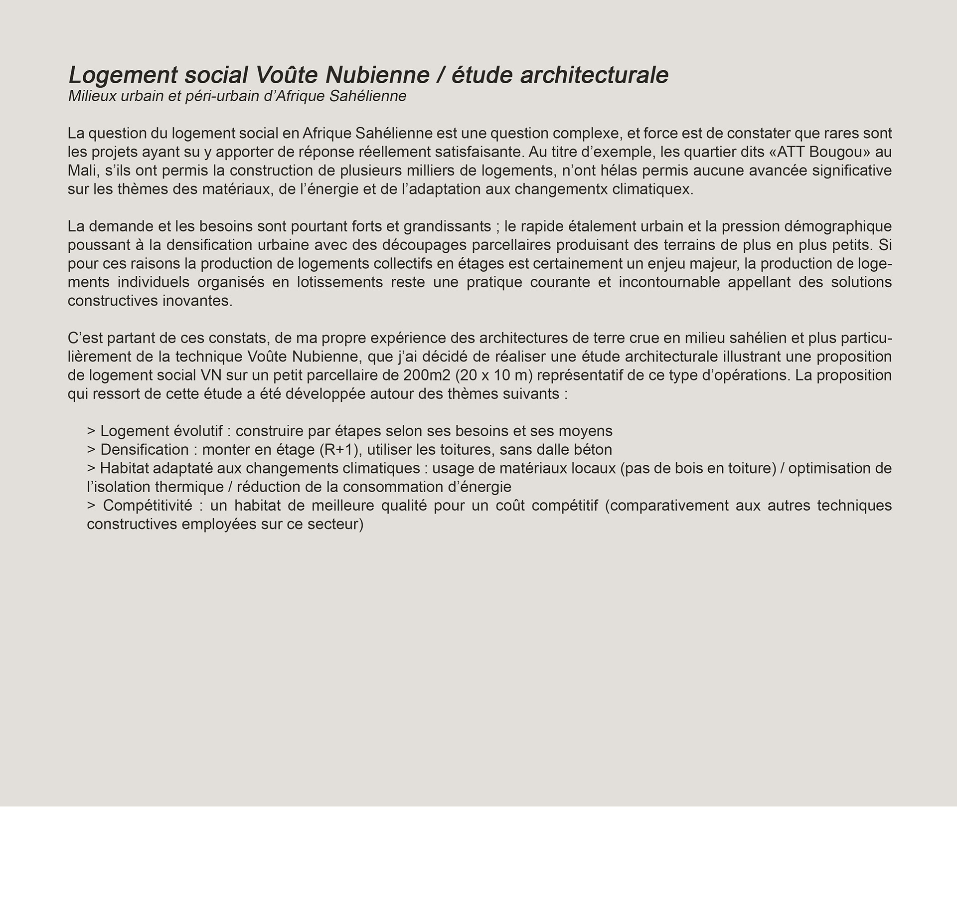 Logement social Voûte Nubienne / études architecturales